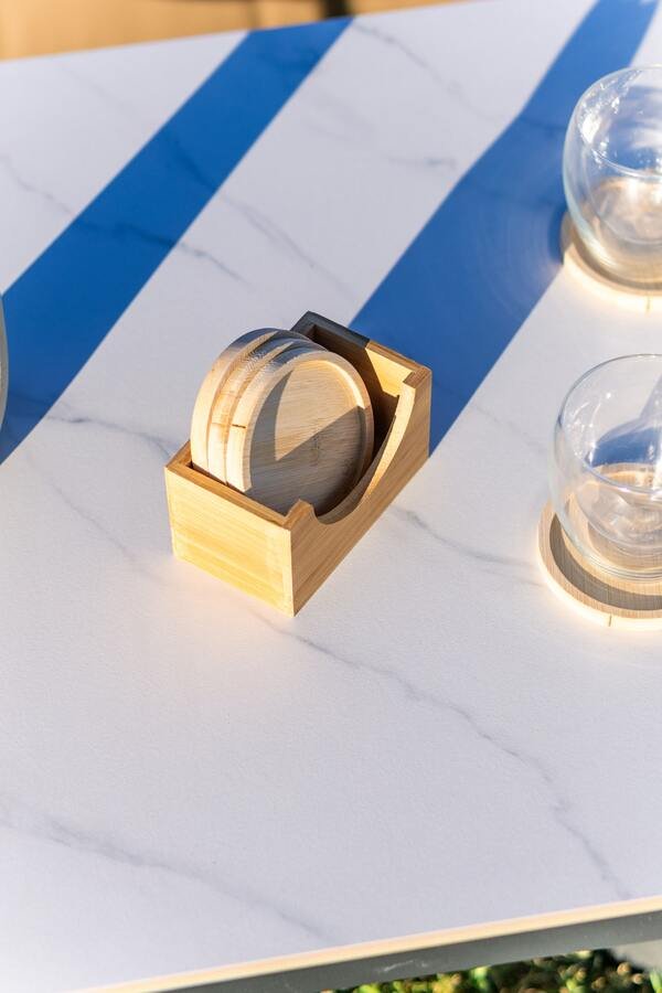 El set de 5 posavasos mas su caja para guardar de madera de bambĂș es una elecciĂłn elegante y prĂĄctica para proteger tus superficies de forma natural. Este conjunto combina la durabilidad y el estilo del bambĂș, ofreciendo una soluciĂłn decorativa y funcional para tu hogar.
